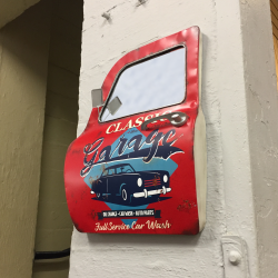 Apportez une touche rétro et chaleureuse à votre entrée avec cette décoration de porte au design vintage. Fabriquée à la main avec soin, elle associe métal et bois pour un rendu authentique et élégant.